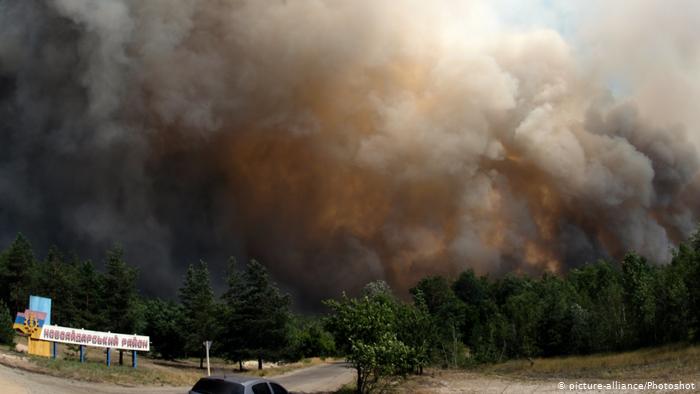 Ще один фактор - зона бойових дій. Епіцентр пожежі розташований за 20-30 км від лінії фронту, а в 2014 році бої відбувалися і біля Сєвєродонецька.