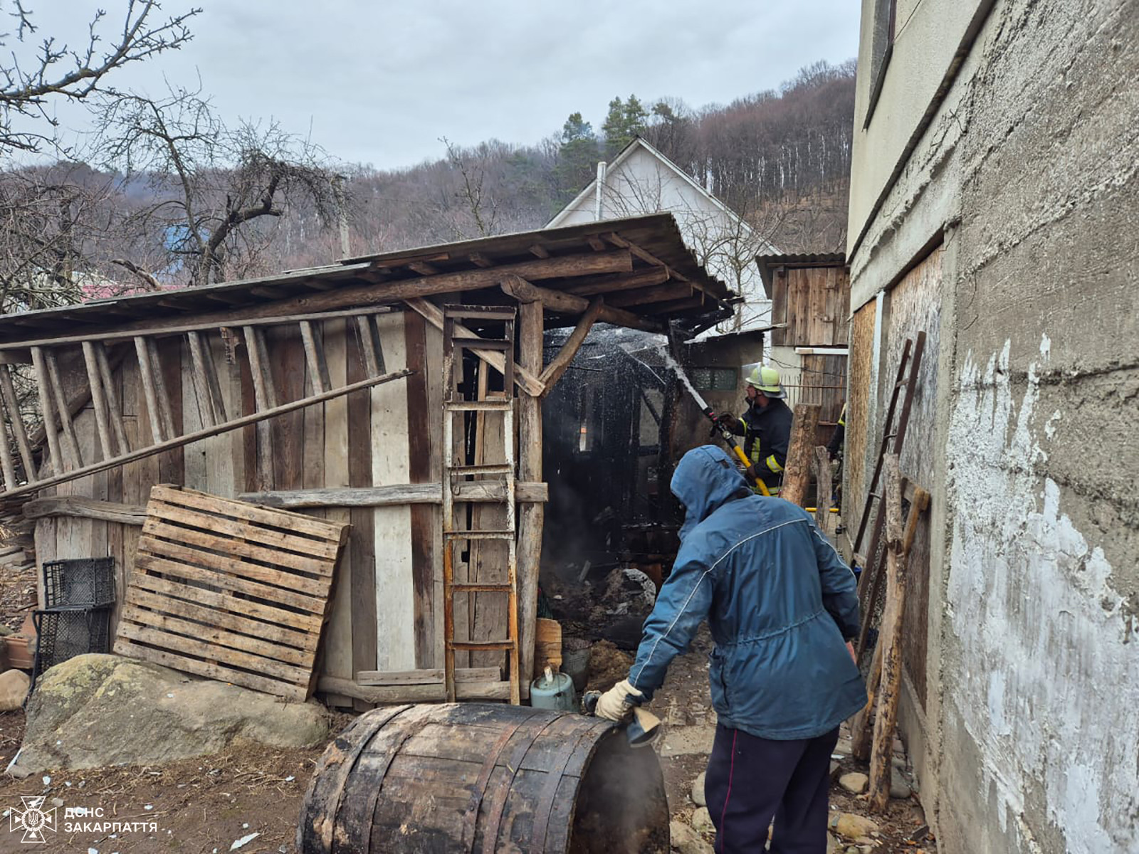 Незабаром справу місцевих мешканців продовжили вогнеборці державних пожежно-рятувальних підрозділів селища Воловець та села Нижні Ворота. О 06:04 бійці ДСНС змогли локалізувати пожежу на площі 70 кв. м, а о 06:22 ліквідувати її остаточно. Серед знищеного — речі домашнього вжитку та господарський інвентар, що знаходився всередині, проте житлові будинки власника та сусідів залишилися неушкодженими.