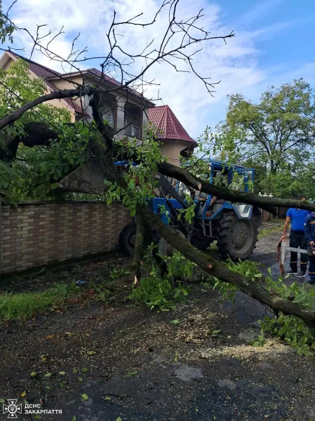 Крім того, сильний вітер повалив дерева на Берегівщині та Мукачівщині. Так, на проїжджу частину доріг впали та обмежили рух 3 дерева у м. Берегове, с. Дийда та с. Горбок. Станом на 08:00 автошляхи розчищено, розпилено 7,5 куб.м деревини. До ліквідації наслідків негоди було залучено державні пожежно-рятувальні частини м. Берегове та м. Іршава.