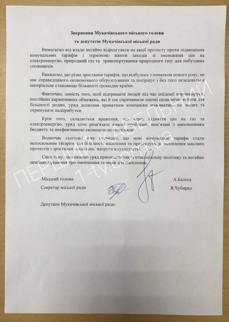 Сьогодні, 13 січня, депутати Мукачівської міської ради та Мукачівський міський голова написали лист-звернення до Уряду України із закликом припинити антисоціальну політику