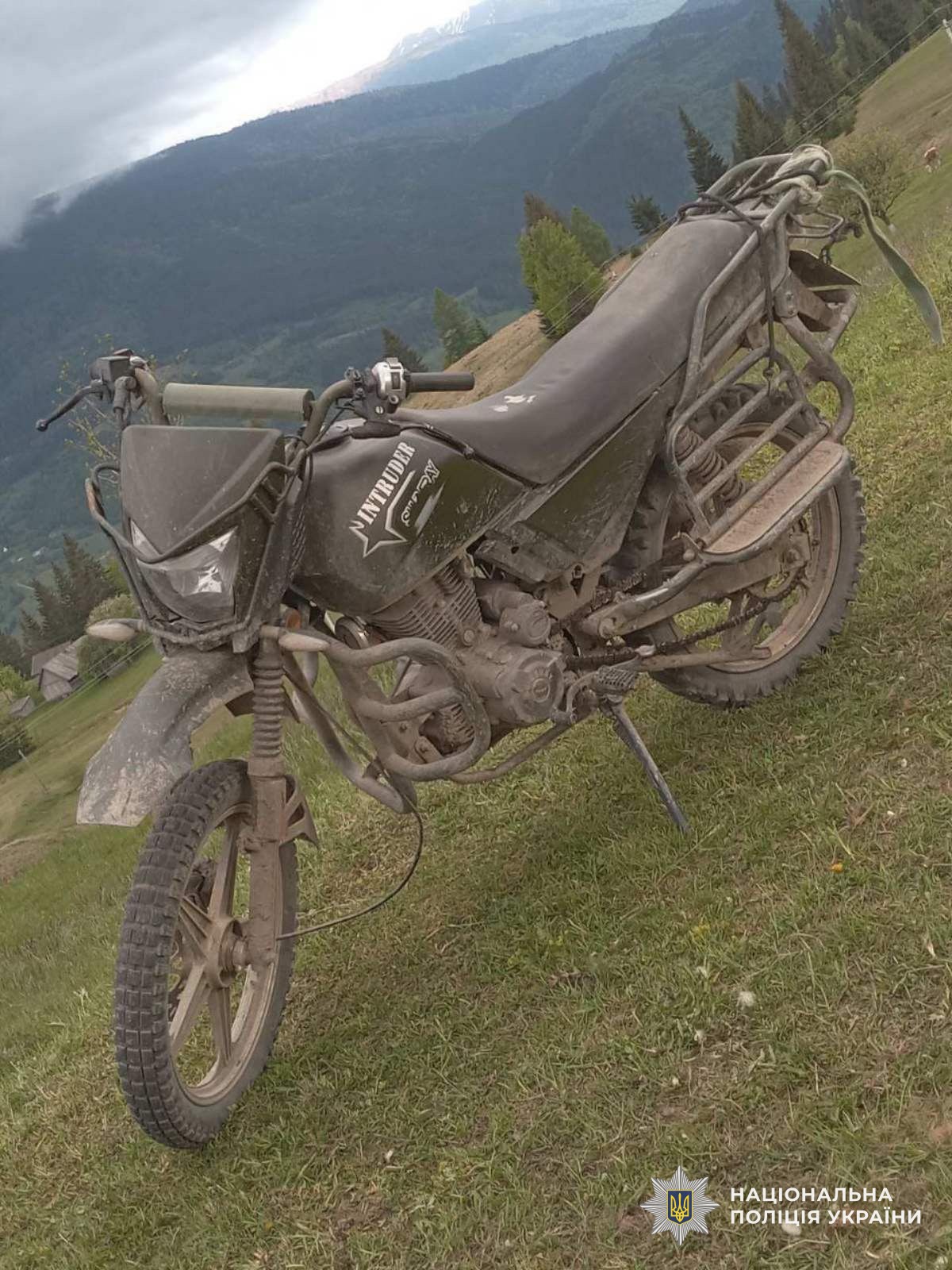 Вранці 22 липня до поліції звернувся 39-річний мешканець селища Ясіня. Чоловік заявив про зникнення мотоцикла, який він залишив припаркованим біля одного з готельних комплексів в урочищі Драгобрат.