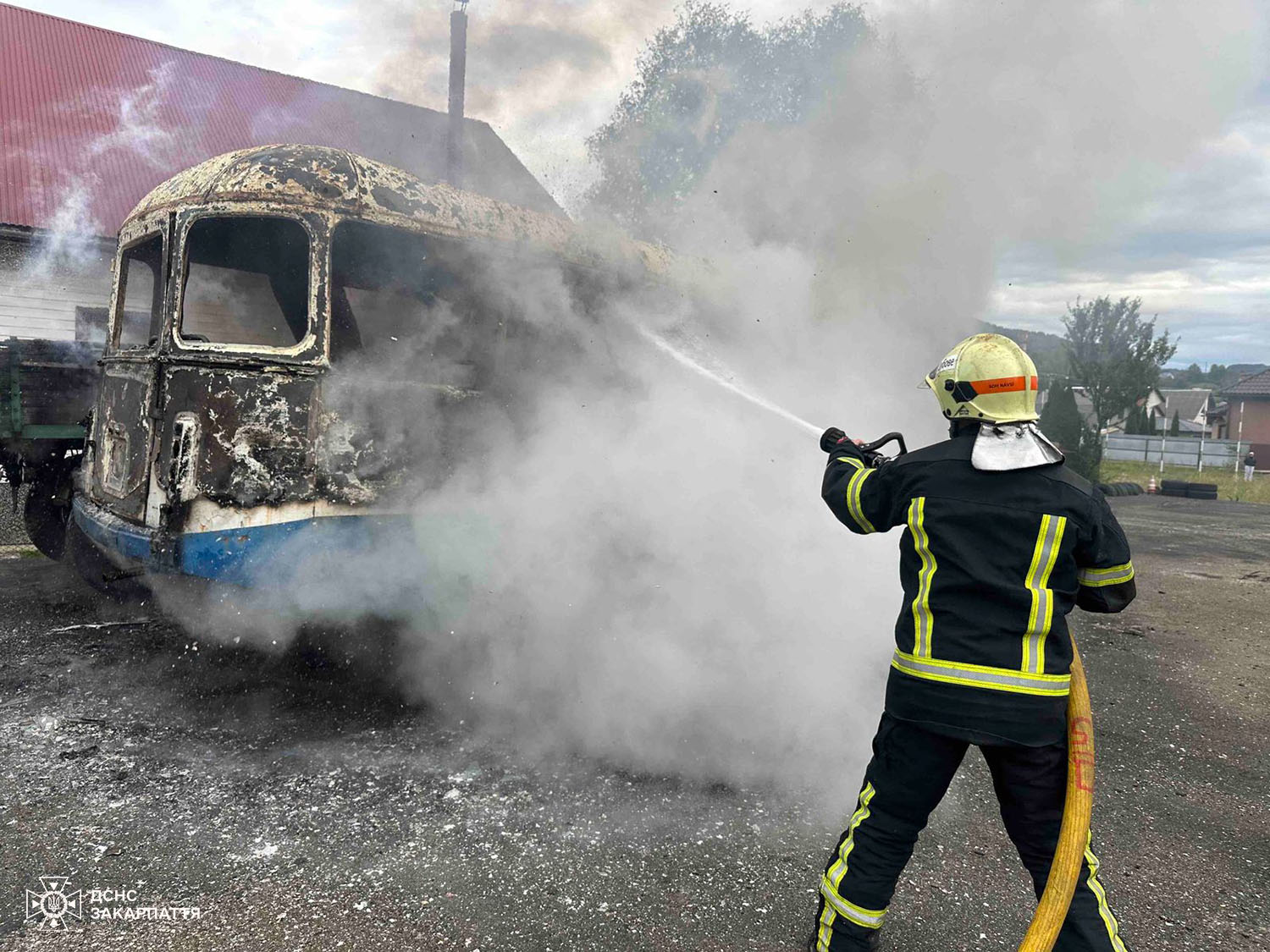 На місце події прибули вогнеборці державного пожежно-рятувального поста селища Дубове, які локалізували пожежу о 17:40 та повністю ліквідували о 17:55. Вогнем знищено моторний відсік та салон автобуса, проте фахівцям ДСНС вдалося попередити поширення вогню на поруч розташований вантажний причіп. На щастя, постраждалих внаслідок пожежі немає.