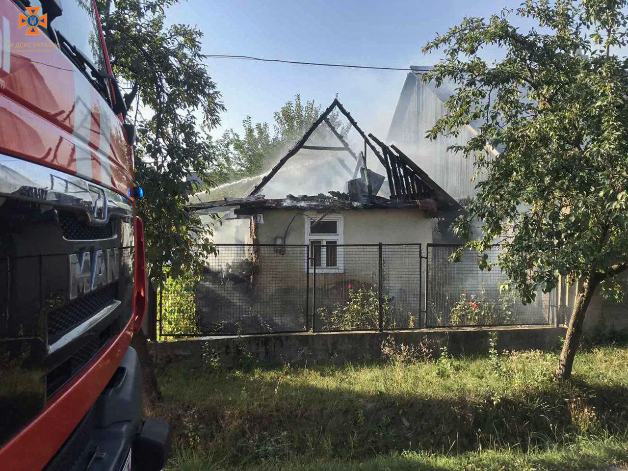 Рятувальники одразу стали на його захист та одночасно прийнялися гасити будинок власниці. Менш ніж за пів години бійці пожежно-рятувальних підрозділів м. Тячів та смт Вишково ліквідували пожежу. За цей час вогонь знищив перекриття та покриття на площі 24 кв.м, проте сусідський будинок рятувальникам вдалось захистити.