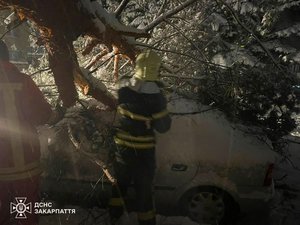 Через сильний сніг та вітер на Закарпатті, 7–8 січня зафіксовано 7 випадків падіння дерев на автошляхи та автомобілі.