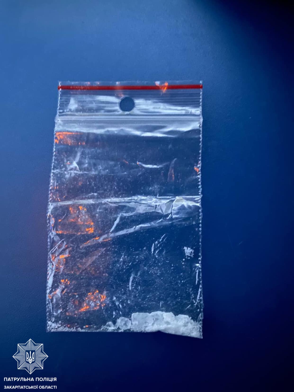 Другий випадок трапився на вулиці Фединця. Близько півночі ТОРівці звернули увагу на чоловіка, який, помітивши службовий автомобіль, прискорив крок. Інспектори наздогнали його та зупинили. Спілкуючись із громадянином патрульні помітили, що він поводить себе підозріло, тому здійснили поверневу перевірку. Згодом інспектори виявили у гаманці чоловіка згорток із білою речовиною, зовні схожою на наркотичну.