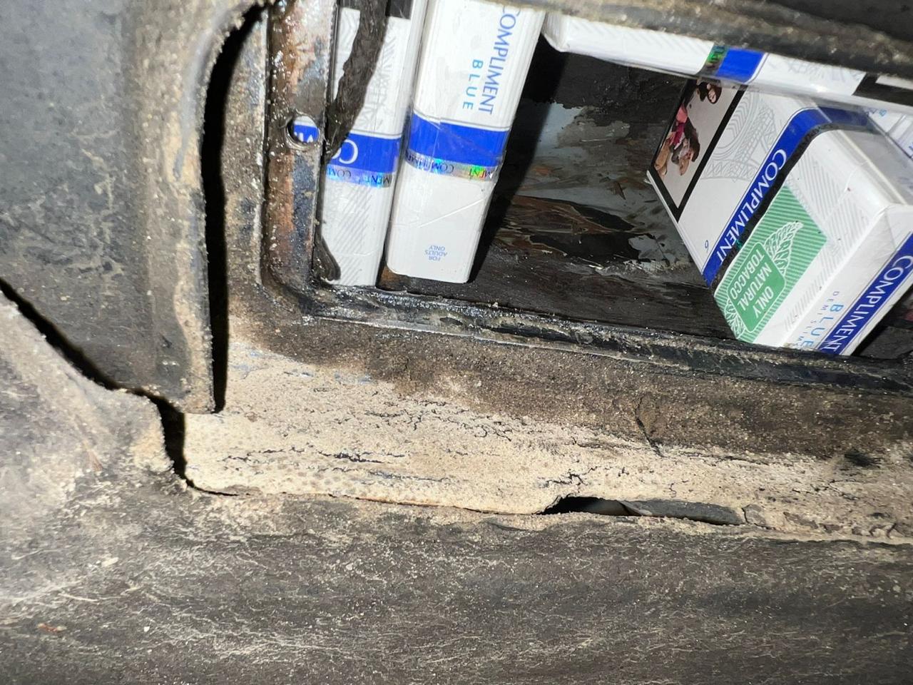В іншій автівці – така ж сама ситуація…з неї вийняли 350 прихованих пачок сигарет марки «Compliment» (без акцизної марки).