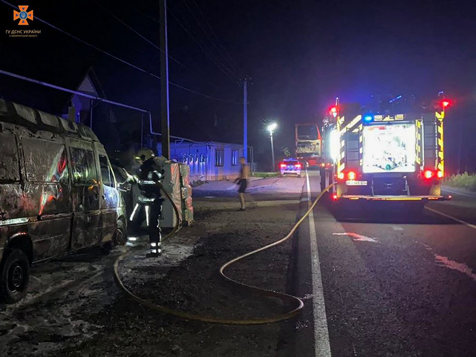 Мукачівські вогнеборці загасили пожежу в мікроавтобусі