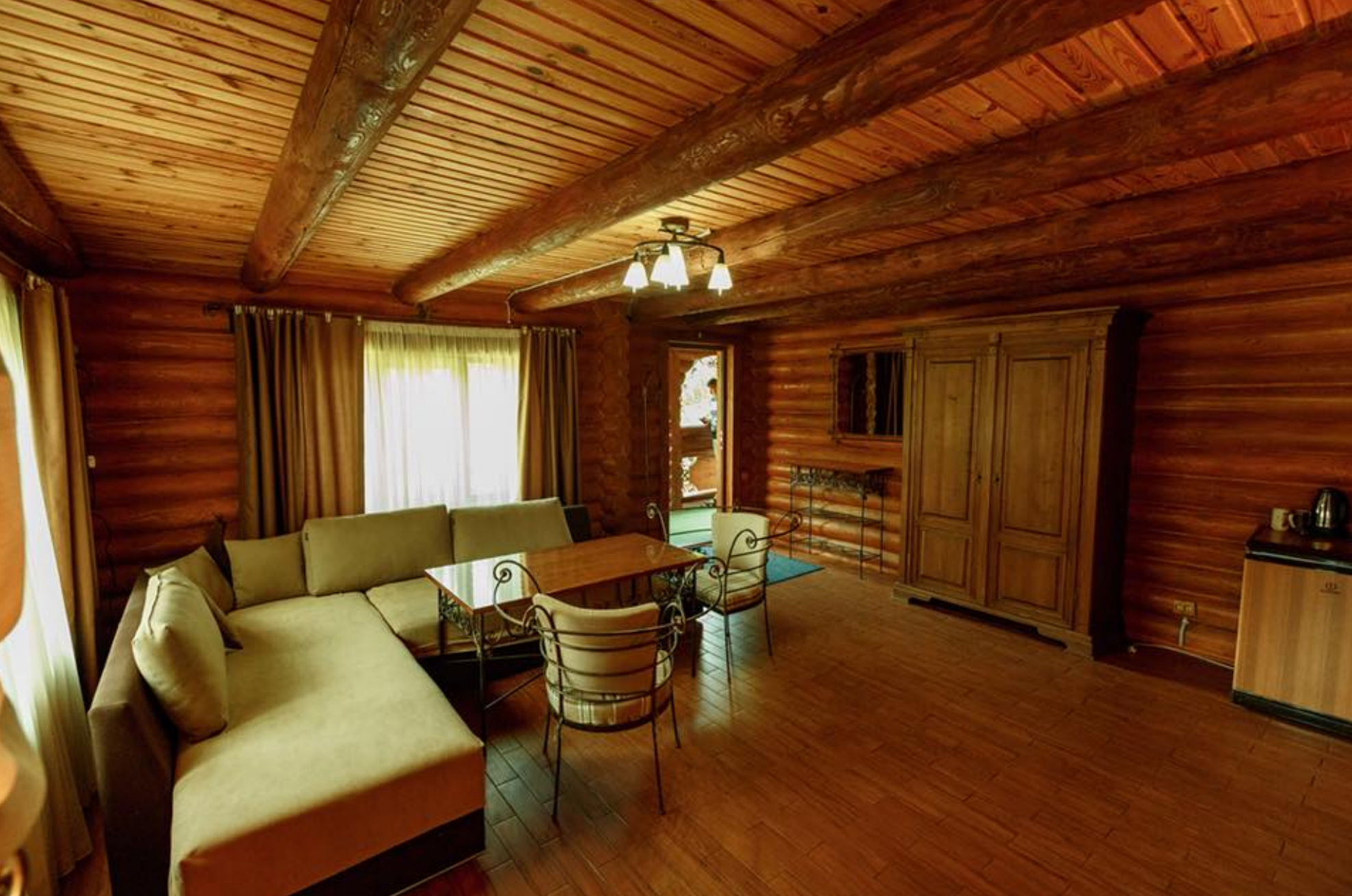 Комплекс пропонує все необхідне для комфортного відпочинку: магазин, трансфер, паркінг, активний відпочинок та підйомники. Гості можуть обрати двомісні стандартні номери або затишні сімейні котеджі з двома кімнатами та критою терасою. Усі номери обладнані всім, що потрібно для спокійного й комфортного перебування.