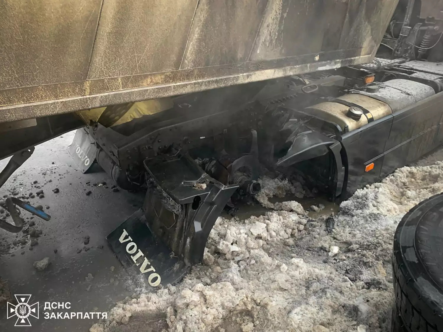 6 січня о 13:04 до Служби порятунку надійшло повідомлення про загорання вантажного автомобіля Volvo FH на вулиці Миру міста Рахів. Водій, який рухався з Івано-Франківська у напрямку Тячева, помітив несправність у роботі гальм, а згодом у дзеркалі заднього виду побачив густий дим із задньої частини транспортного засобу.