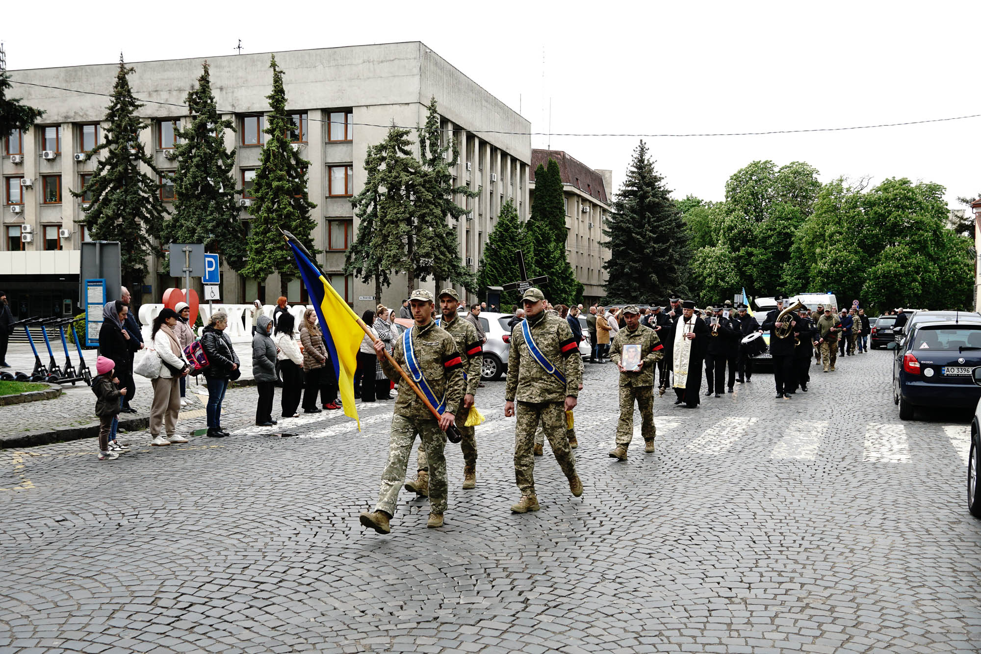 Священники відслужили заупокійну літургію, після чого жалобна хода вирушила до Пагорба Слави, де Олексія Кобця поховали з військовими почестями.