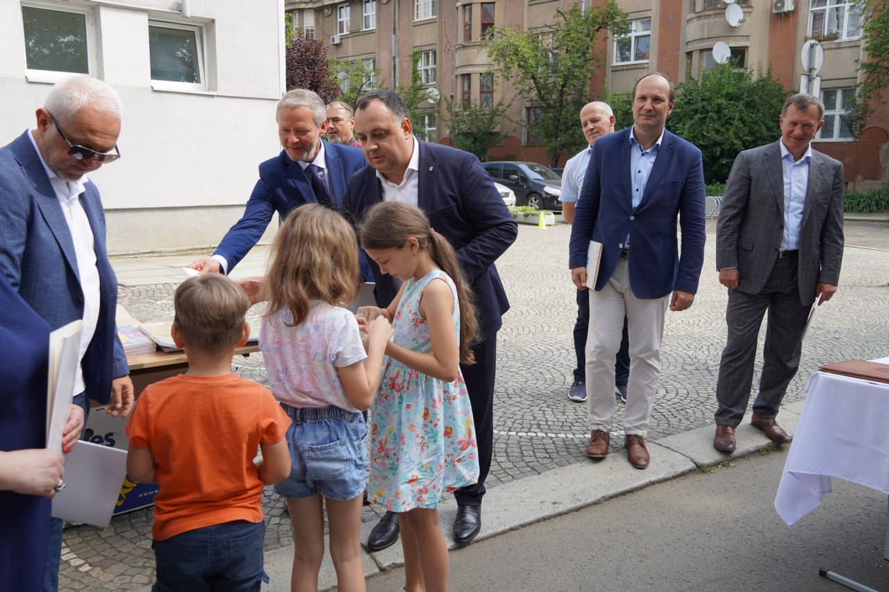 Крім того, гості з Чехії передали директорці закладу Світлані Фесенко підручники, оскільки в школі вивчають і чеську мову, а також подарунки від чеських діток їхнім ровесникам в Ужгороді.