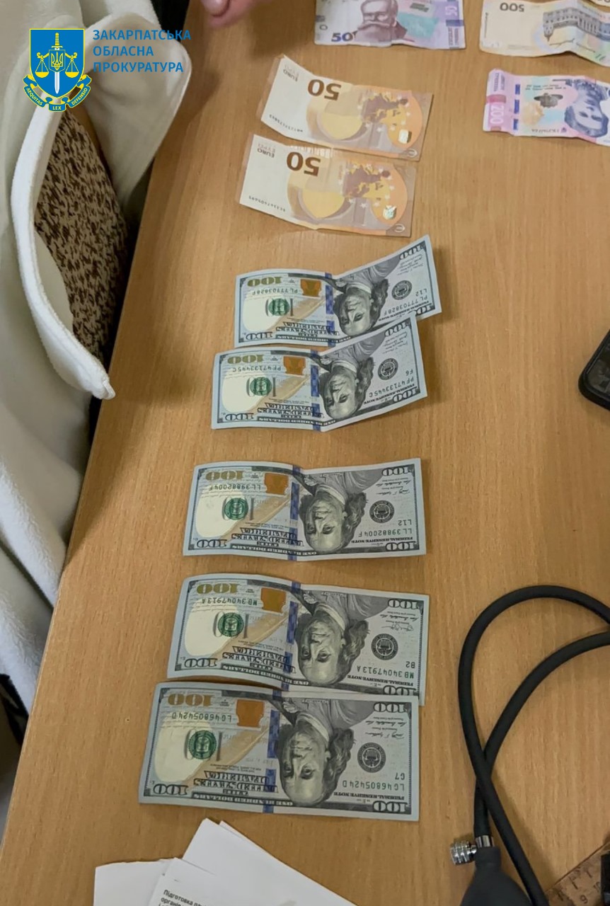 За даними слідства, завідувач відділення місцевої лікарні вимагав 1000 доларів США від закарпатця за виготовлення медичної документації з метою оформлення відстрочки від мобілізації. Пацієнт проходив дообстеження за направленням територіального центру комплектування.