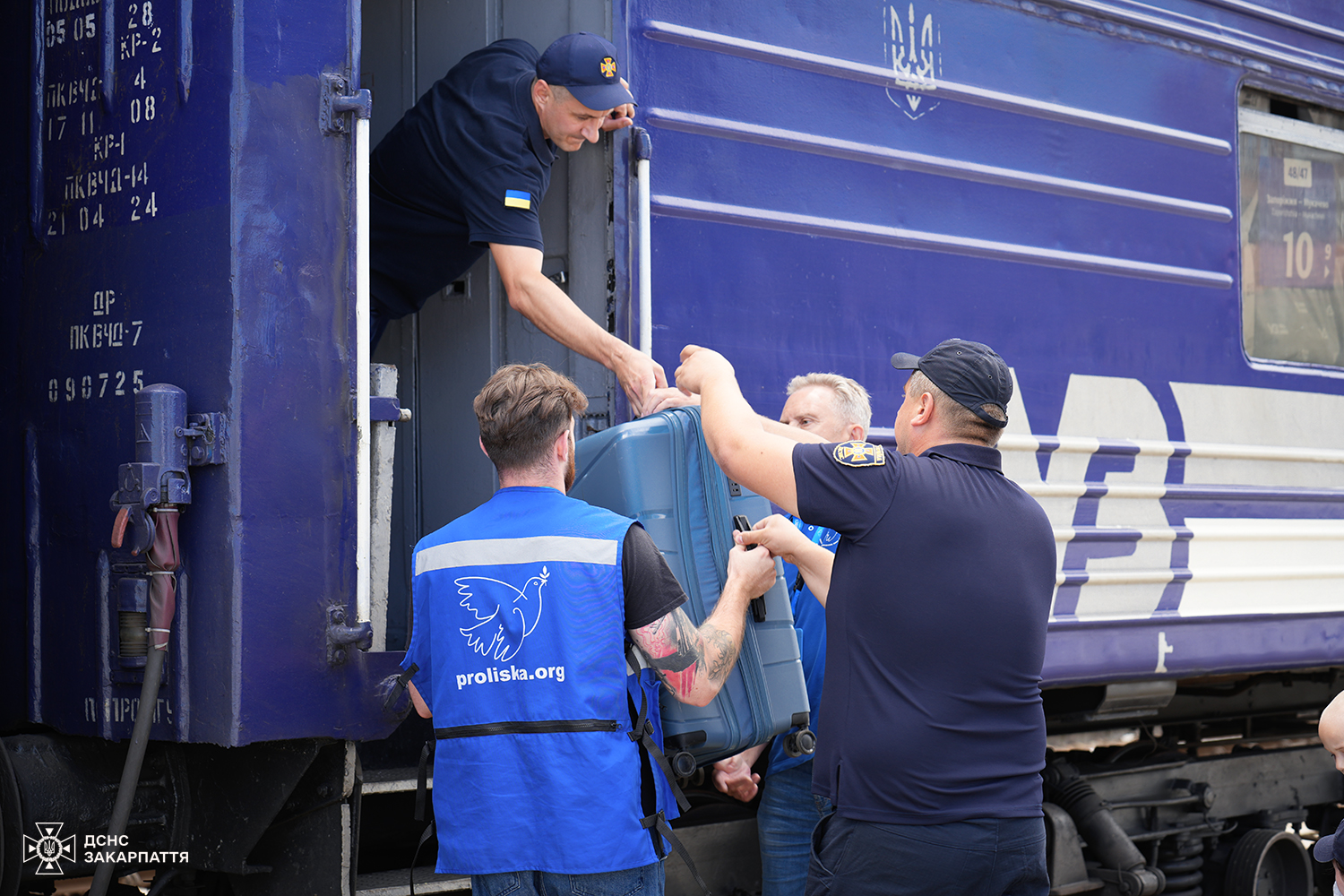 До Закарпаття прибули нові родини вимушено переміщених осіб з Дніпропетровської області. На вокзалі в Мукачеві їх зустріли рятувальники, психологиня ДСНС, представники соціального захисту, волонтери та працівники Червоного Хреста.