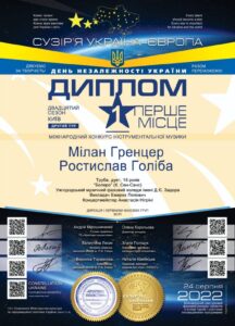 Перше місце на міжнародному конкурсі інструментальної музики “Сузір’я Україна-Європа” здобули студенти 4-го курсу Ужгородського музичного коледжу імені Д. Є. Задора спеціалізації “Оркестрові духові та ударні інструменти” Гренцер Мілан та Голіба Ростислав