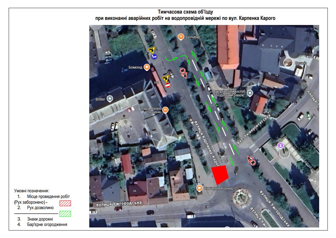 Завтра у Мукачеві по вулиці Карпенка Карого буде тимчасово обмежено рух транспорту